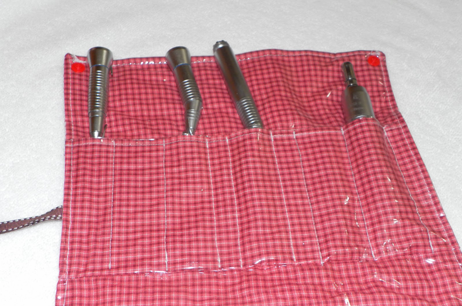 Este estojo eu fiz para guardar meus motores odontológicos, já que os levo para todos os lugares onde trabalho. Sendo instrumentos extremamente delicados, deixei ele bem fofinho e revesti com plástico para ficar mais higiênico. Adorei!